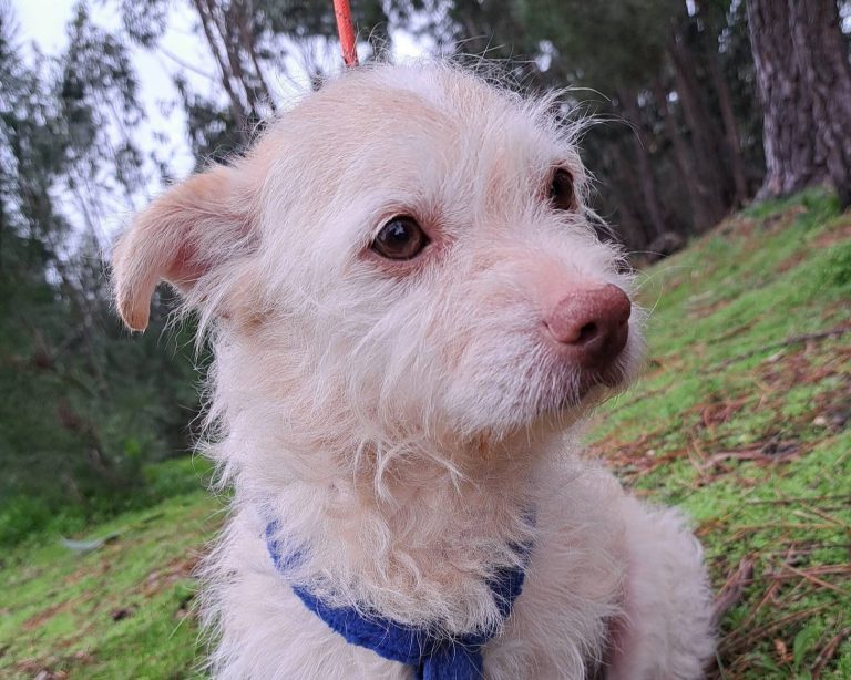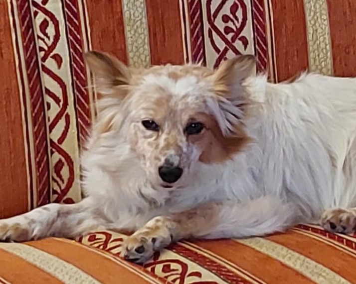 Cookie ist ca. 09/2023 geboren, 35 cm groß und wiegt ca.9 kg. Sie wurde zusammen mit einem weiteren Hund (Yoda) in der Nähe eines Sees