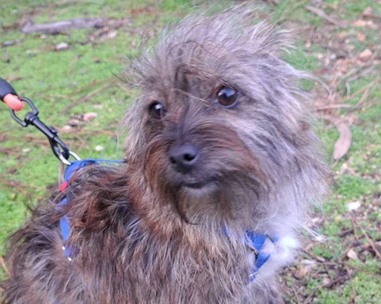 Yoda ist ca. 09/2021 geboren, 30 cm groß und wiegt 8 kg. Sie wurde zusammen mit einem weiteren Hund (Cookie) in der Nähe eines Sees