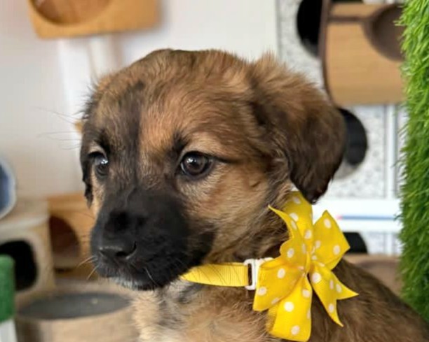 Nicoletta ist ca. 10/2025 geboren, aktuell (19.1.) etwa 20-25 cm groß und wiegt ca. 3,5 kg. Eine liebe Tierschützerin hatte 7 Welpen in Rumänien auf