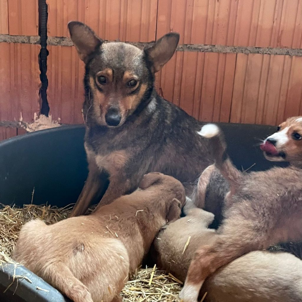 Allegra ist ca. 10/2025 geboren, aktuell (19.1.) etwa 20-25 cm groß und wiegt ca. 3-4 kg. Eine liebe Tierschützerin hatte 7 Welpen in Rumänien auf einem Feld gefunden – sie hatten Schutz in einem Erdloch gesucht. Die Tierschützerin hat nicht gezögert und sie direkt gerettet – in der jetzigen Jahreszeit hätten sie nicht lange überlebt und wären mit großem Hunger erfroren. Ein paar Tage später wurde auch die Mutterhündin gesichtet und gerettet – sie war sehr schwach, die letzten Wochen hatten sehr an ihren Kräften gezehrt. Die kleine Familie konnte in einer privaten Pflegestelle in Rumänien untergebracht werden, die Mutter braucht noch etwas Zeit zur Erholung.