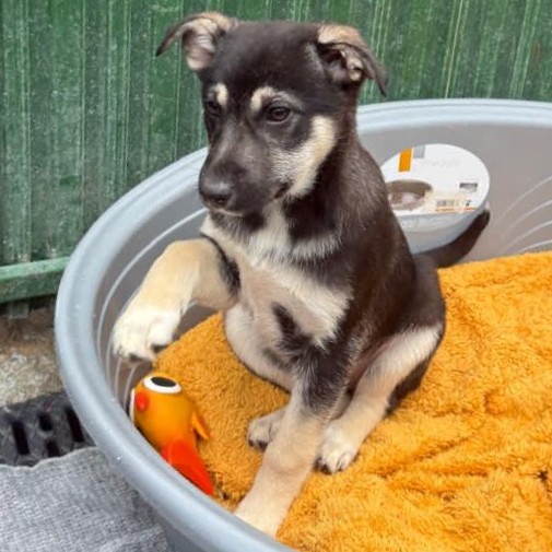 Antje ist ein sanfter Welpe, der die Geborgenheit bei den Tierschützern genießt. Sie liebt die Nähe zum Menschen und genießt die Streicheleinheiten und Zuwendungen. Altersentsprechend ist sie welpentypisch verspielt, aktiv und dabei immer freundlich im Umgang mit ihren Artgenossen. Sie liebt es auch mit ihren Geschwistern gemeinsam im Körbchen zu liegen und zu kuscheln.