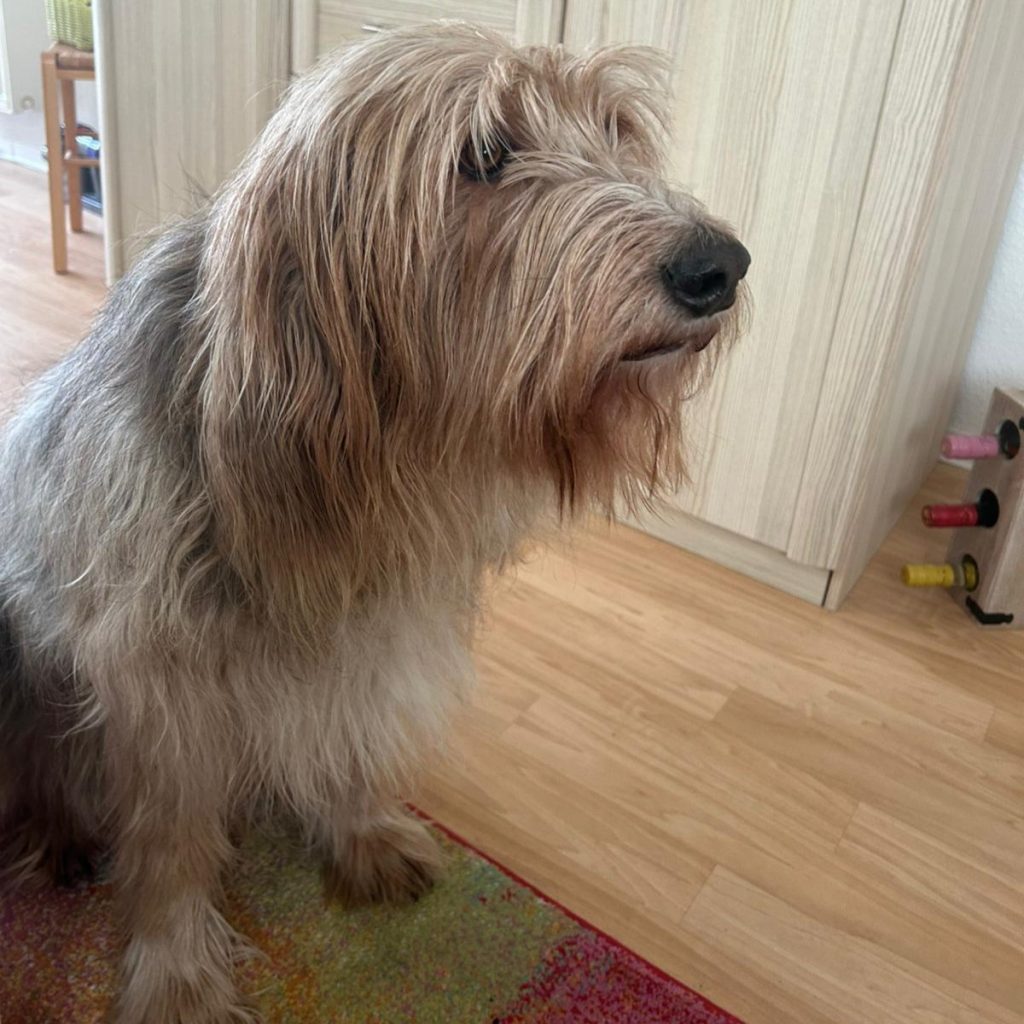 Barlo ist ein freundlicher, ausgesprochen entspannter Hund. In der Wohnung verhält er sich sehr ruhig und kommt gut zur Ruhe, er bellt drinnen gar nicht und kommt auch nicht zur Tür wenn es klingelt oder sein Mensch wieder nach Hause kommt. Er genießt es auf der Decke oder am liebsten auf dem Sofa zu liegen. Bei Besuchern ist er sehr vorsichtig und schnüffelt erst einmal in Ruhe. Das Leben mit Kindern kennt er nicht und es könnte ihm aufgrund seines ruhigen Wesens zu wild sein. Barlo ist mit anderen Hunden sehr gut verträglich – Katzen wiederum mag er überhaupt nicht.