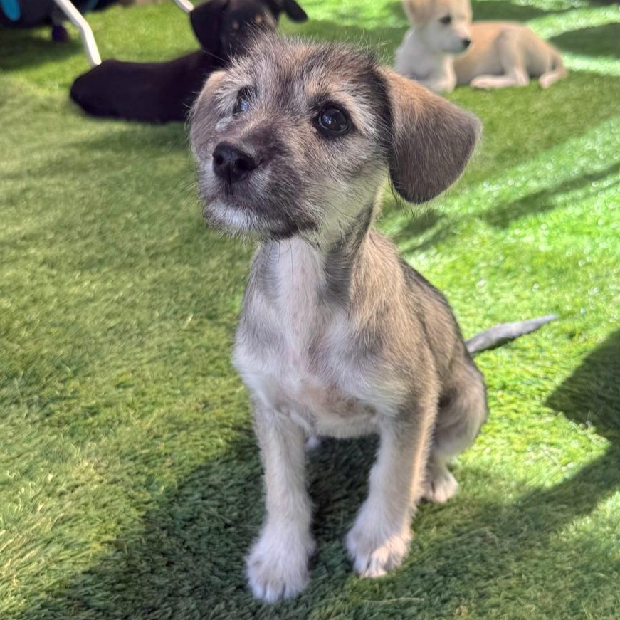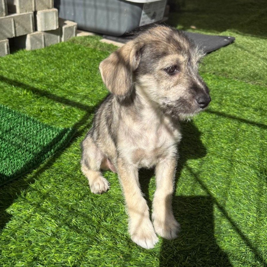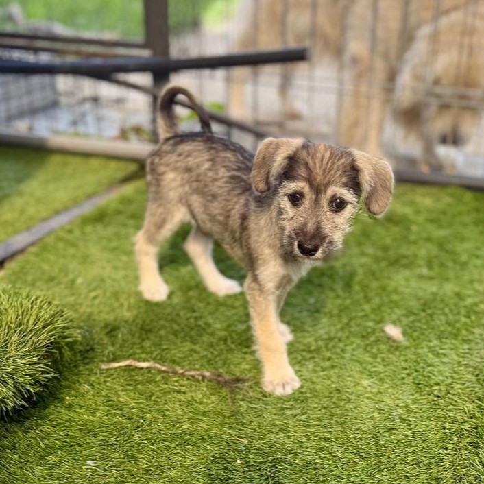 Cassy ist ca. 06/2025 geboren, aktuell (28.09.) 24 cm groß und wiegt 4,5 kg. Sie wurde zusammen mit ihrer Mutter sowie vier weiteren Geschwistern am Rande eines Dorfes gesichtet. Da die Tierschützerin leider zu der Zeit keinen Platz in ihrem privaten Shelter hatte, konnte sie die Familie nicht direkt mitnehmen. Sie fuhr mit dem Tierarzt raus zu den Tieren, um sie zu impfen und zu entwurmen. Den ganzen Sommer über versorgte sie die kleine Familie mit Futter. Leider waren eines Tages nur noch zwei Welpen vor Ort. die von den Tierschützern dann in Sicherheit gebracht wurden. Wenig später tauchte ein weiterer Welpe wieder an der Futterstelle auf und konnte auch gerettet werden.