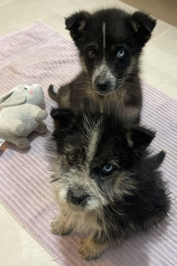 Chess und Joker sind sehr liebe und wunderschöne Hundekinder – die unterschiedlichen Augen machen sie zu etwas ganz Besonderem. Sie sind aufgeschlossen und zutraulich, lieben die Nähe zu der Tierschützerin und lassen sich gerne streicheln. Mit den anderen Hunden sind sie gut verträglich und lieben das gemeinsame Spiel mit ihnen – sie verhalten sich absolut welpentypisch: verspielt, neugierig und aktiv! Chess ist der etwas kleinere der Brüder.
