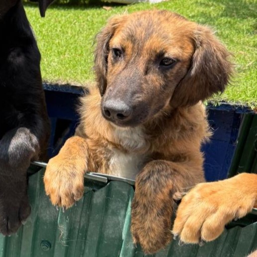 .Clivia ist ca. 01/2025 geboren, aktuell (15.8.) 42 cm groß und wiegt 13 kg. Clivia wurde zusammen mit ihrer Schwester Cayla in einem Ort nahe des Shelters gefunden. .Tierschützer wurden auf die zwei aufmerksam und nahmen sie in ihrem privaten Mini-Shelter auf.