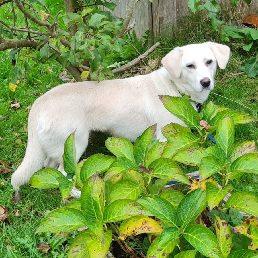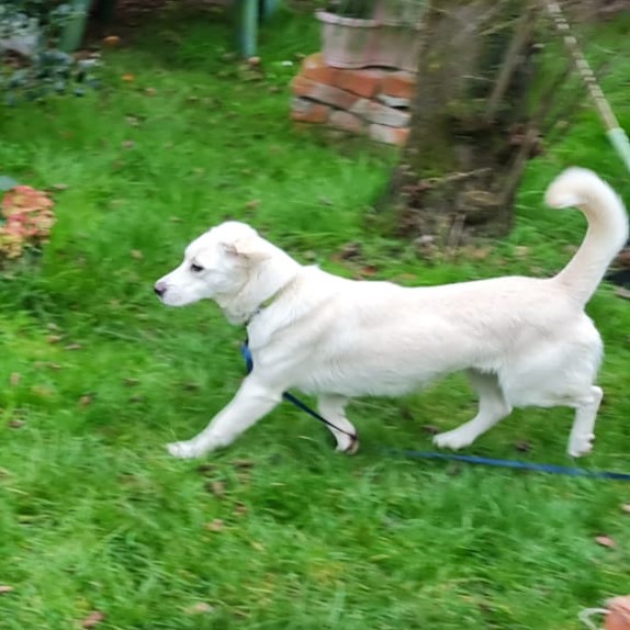 Dolly ist eine ganz liebe und freundliche Hündin, die aufgrund ihrer Erfahrungen in den letzten Wochen/Monaten Menschen gegenüber noch etwas vorsichtig ist – aber in keinster Weise aggressiv. Sie taut von Tag zu Tag mehr auf und fängt an Streicheleinheiten zu genießen. Mit den anderen Hunden in ihrem neuen Rudel ist sie sehr gut verträglich, sie liebt es mit ihnen zu spielen und durch den Garten zu toben.