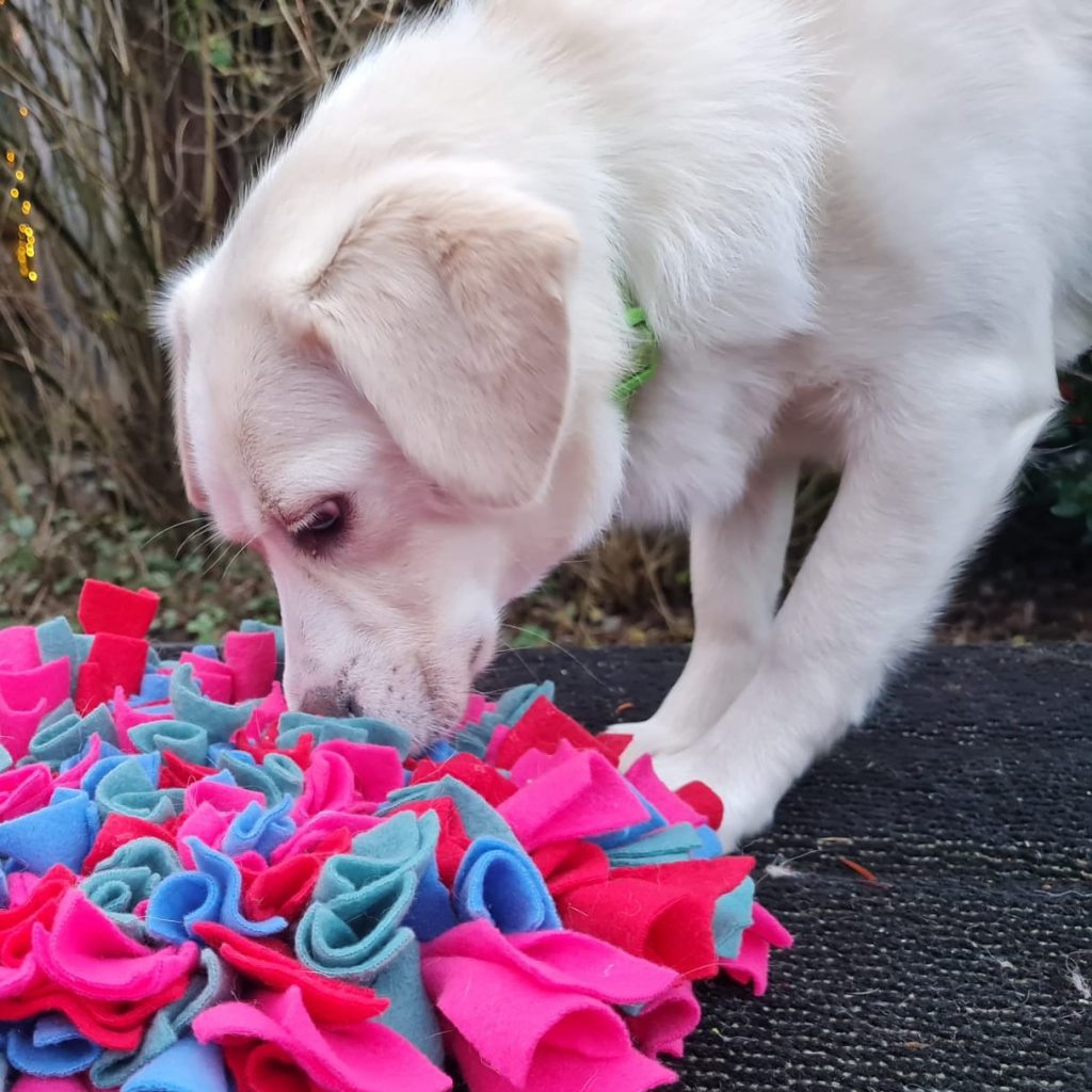 Sie ist auch beim Gassigehen sicherer geworden und orientiert sich sehr an ihrem Menschen. Dolly lernt unwahrscheinlich gerne und schnell – es ist eine Freude sie um sich zu haben, sie ist ein immer fröhliches Mädchen. Sie kommt im Haus gut zur Ruhe, kann mit dem Pflegestellenrudel entspannt alleine bleiben, kennt es im Auto mitzufahren und ist stubenrein. Es ist weder Jagdinstinkt noch Futterneid vorhanden.
