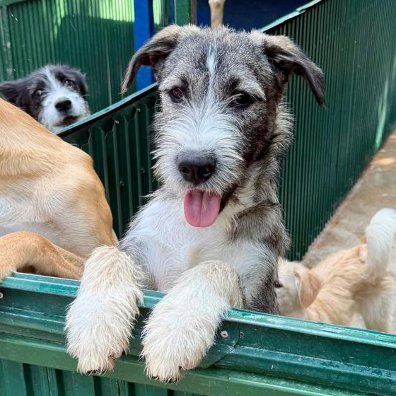 Esco ist zu einem sehr freundlichen Junghund herangewachsen. Er ist Menschen gegenüber aufgeschlossen und zutraulich und mag gerne Streicheleinheiten. Er verhält sich altersentsprechend, ist aufmerksam, verspielt und interessiert an seiner Umgebung. Er spielt gerne mit den anderen Hunden und ist mit allen gut verträglich. Die Mutter hat eine Höhe von 50 cm.