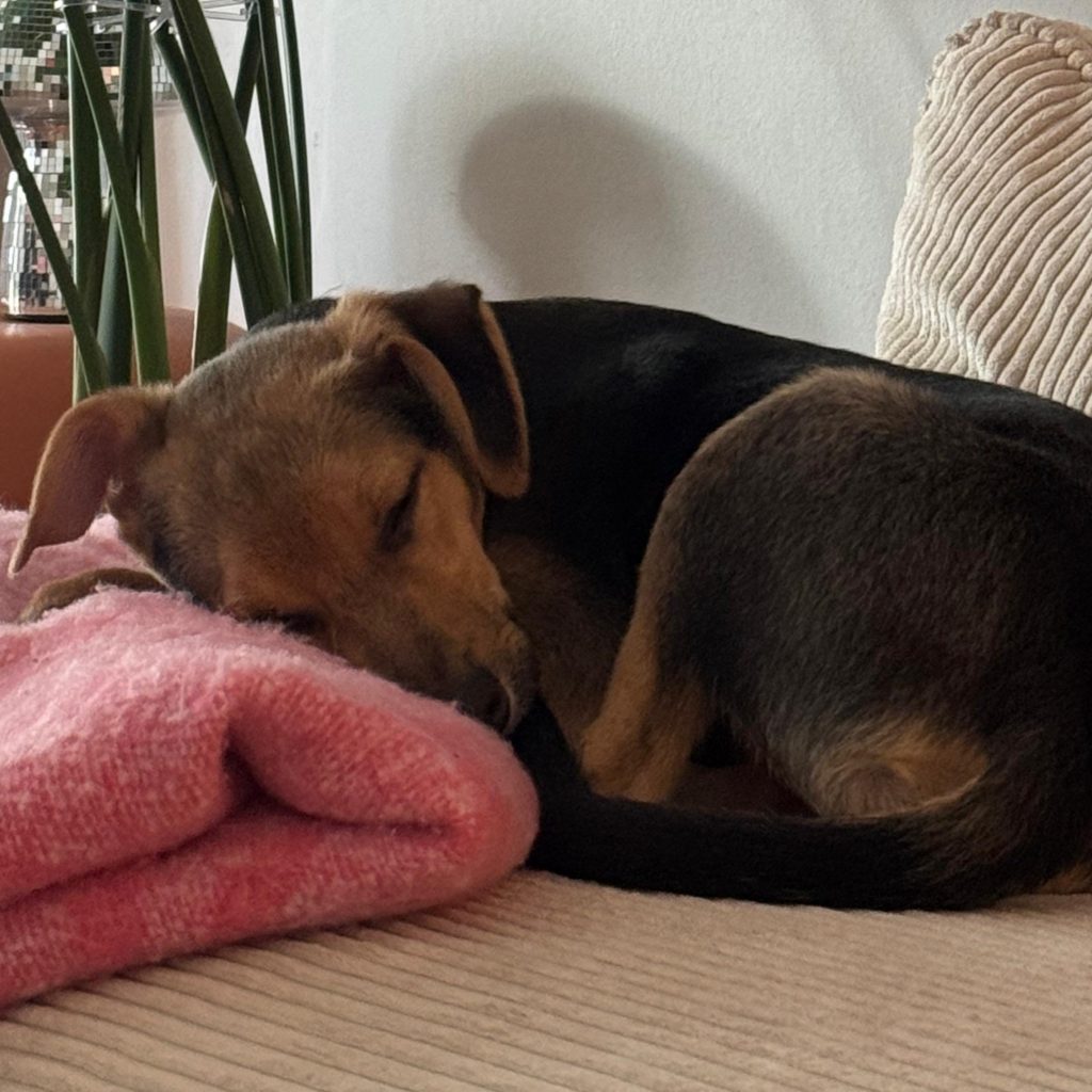 Auf seiner Pflegestelle hat sich Frodo sehr schnell eingelebt. Er liebt es zu lernen und zeigt bereits nach kurzer Zeit beeindruckende Fortschritte. Man merkt sofort, wie intelligent und motiviert er ist. „Sitz“ und „Platz“ beherrscht er schon richtig gut und auch das Hunde-1×1 lernt er gerade mit viel Begeisterung.