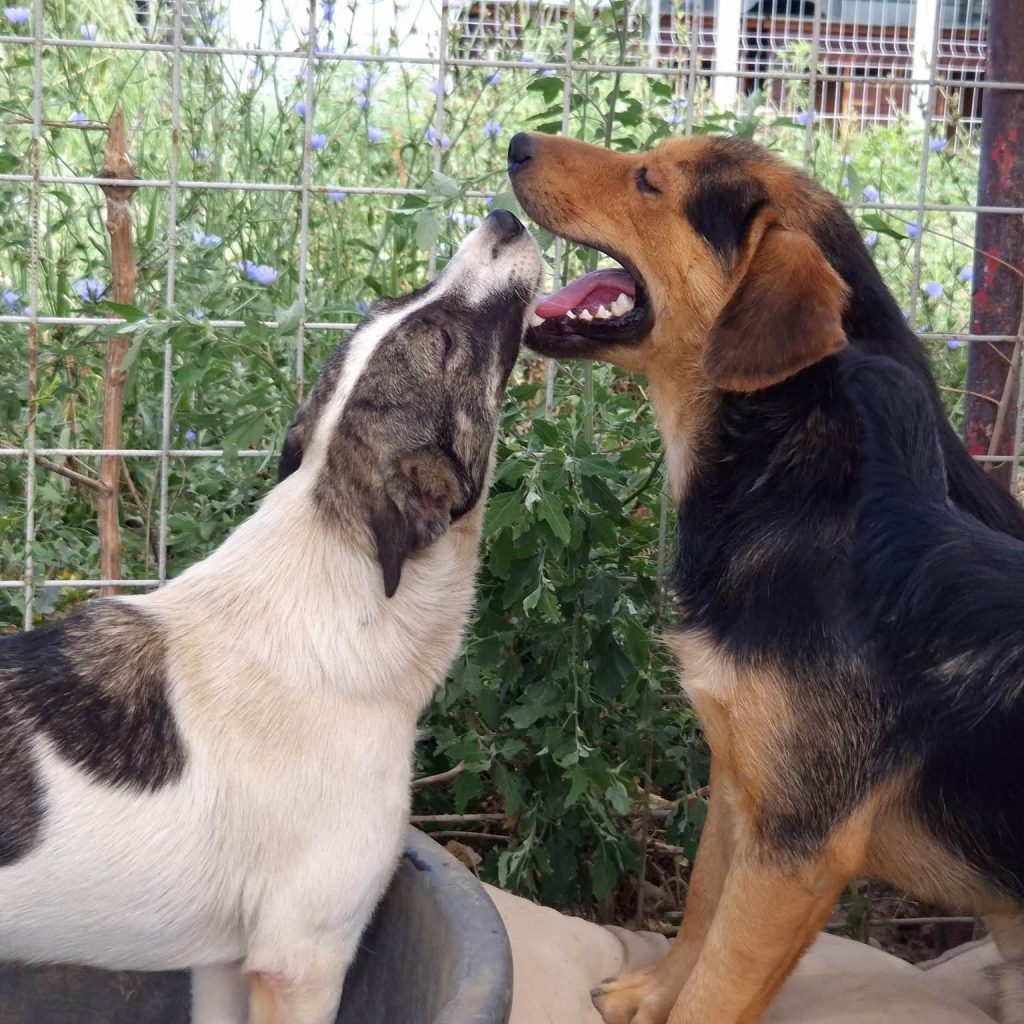 Mit ihren Artgenossen im Zwinger versteht sie sich ausgesprochen gut und ständig verteilt sie dort Küsschen.