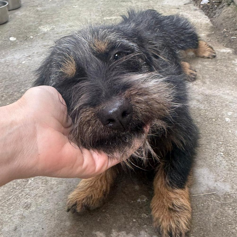 Hermine ist ca. 05/2025 geboren, ca. 30 cm groß und wiegt etwa 7 kg. Sie wurde von einer Tierschützerin auf einem Feld in Rumänien gefunden worden. Hermine hatte so ein Glück, dass sie gesehen und gesichert werden konnte. Bei den kalten Temperaturen und alleine hätte sie nicht mehr lange überlebt. Sie lebt jetzt bei der Tierschützerin in einem großen Rudel heimatloser Hunde.