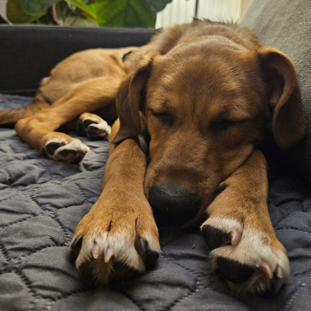 Jarah ist eine liebe und freundliche junge Hündin, sie bindet sich schnell an ihre Bezugsperson – ihr Pflegefrauchen ist ihr Lieblingsmensch. Aber auch zu den anderen Bewohnern, den Kindern und dem Mann ist sie freundlich, aber etwas zurückhaltender – sie kommt, wenn man sie ruft, nimmt Leckerlies und lässt sich auch kurz streicheln, aber dann geht sie auch wieder. Bei Fremden ist sie zwar neugierig, aber anfänglich etwas vorsichtig, da muss sie erst Vertrauen fassen und braucht etwas Zeit. In der Familie ist sie von Tag zu Tag mehr aufgetaut und fühlt sich sichtlich wohl, das Sofa ist ihr Lieblingsplatz und wenn ihr Frauchen dann noch zum ankuscheln da ist, ist es top.
