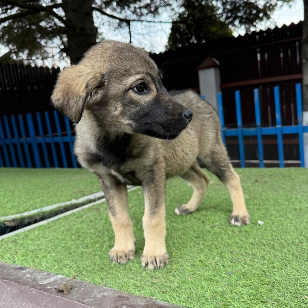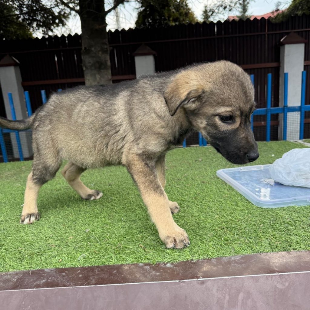 Kjron ist ca. 12/2025 geboren, aktuell (01.04) 27 cm groß und wiegt 6 Kg. Er wurde zusammen mit seiner Mutter und 7 Geschwistern zu den Tierschützern gebracht. Die Familie lebte in einem Wohngebiet auf der Straße. Anwohner beschwerten sich über die vielen Welpen und wollte diese nicht mehr vor Ort haben. Seither lebt die Familie in einem privaten Mini-Shelter nahe Bukarest.