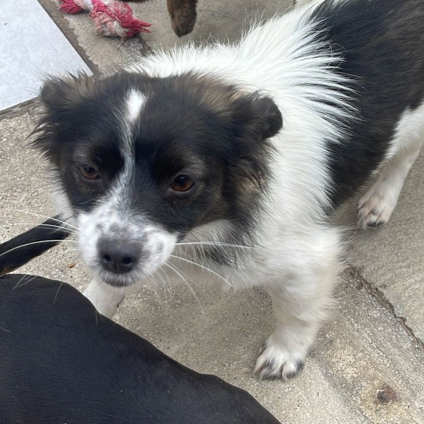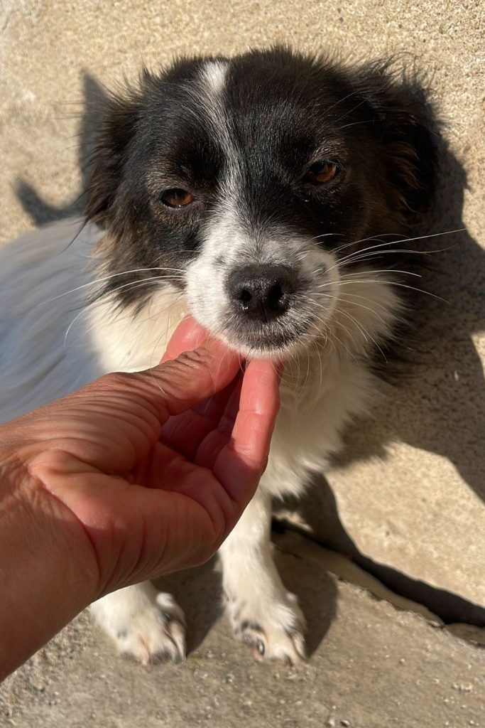 Lilly ist eine liebe, sehr zarte Hündin, die mit den anderen Hunden gut verträglich ist und gerne mit ihnen spielt. Wir wissen nicht, wie lange sie auf sich allein gestellt war – wir denken, dass sie schon mal ein Zuhause hatte. Sie zeigt sich der Tierschützerin gegenüber aufgeschlossen, ist neugierig und interessiert und lässt sich gerne von ihr streicheln.