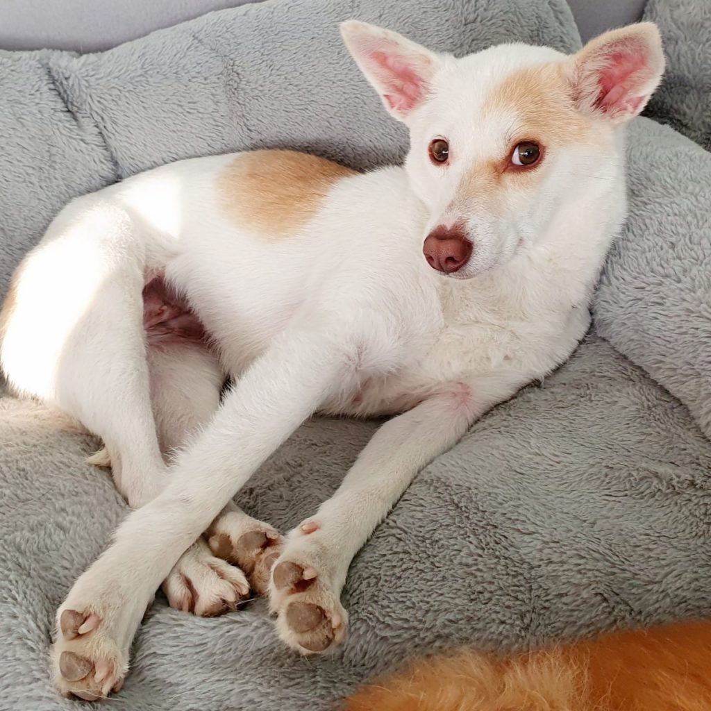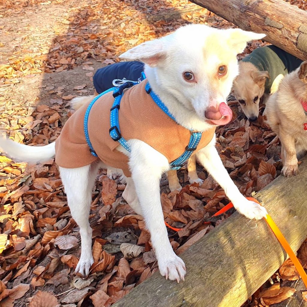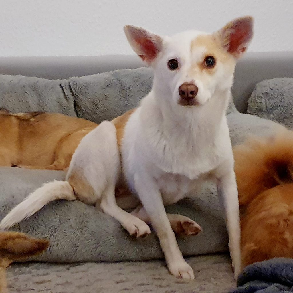 Luni ist ein liebes und verschmustes Hundemädchen. Auf ihrer Pflegestelle hat sie sich recht schnell eingelebt – sie lebt mit mehreren kleinen Hunden zusammen und verhält sich ihnen gegenüber sehr sozial – sie ist drinnen ruhig und entspannt. Zu Menschen ist sie sehr lieb und unterwürfig – sie braucht etwas Zeit, bis sie vertraut. In der Umwelt zeigt sie noch Unsicherheiten bei Begegnungen mit Menschen und/oder Hunden (vor allem im Dunkeln), aber auch das ist schon viel besser geworden. In ihrem bisherigen Leben konnte sie nicht viel kennenlernen, wird hier aber jeden Tag mutiger und macht Fortschritte.