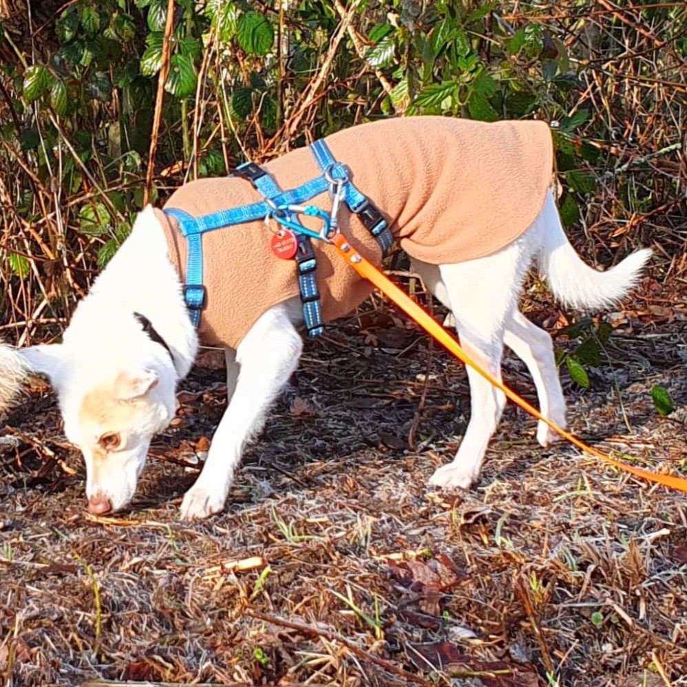 Luni lässt sich ihr Halsband und Sicherheitsgeschirr problemlos anziehen und läuft schon ganz gut an der Leine. Sie hat gelernt Treppen laufen und Aufzug zu fahren, mit den anderen Hunden kann sie mehrere Stunden alleine bleiben, das Autofahren bereitet ihr noch ab und zu Übelkeit. Sie liebt die Spaziergänge in der Natur, wo sie gemeinsam mit den anderen Hunden über Wiesen und Felder schnüffeln und stromern kann und immer wieder neue Dinge entdeckt. Ein leichter Jagdtrieb könnte vorhanden sein.