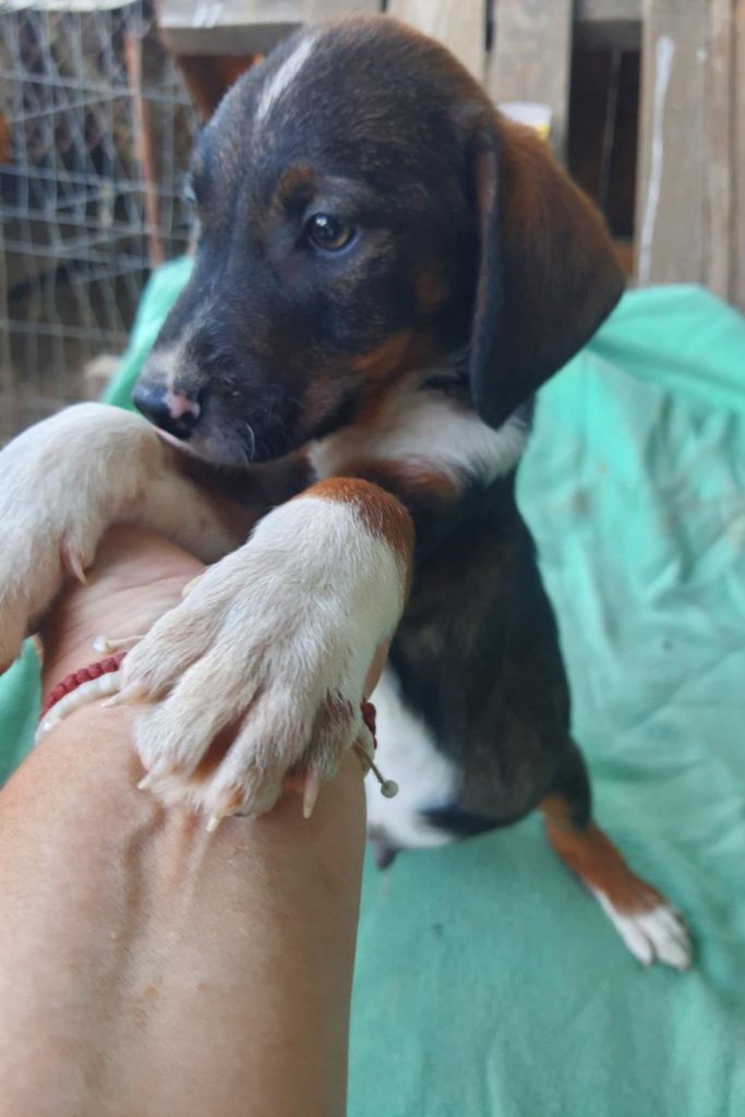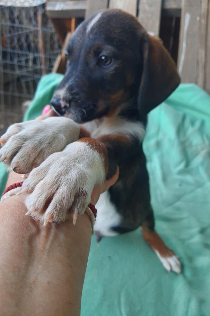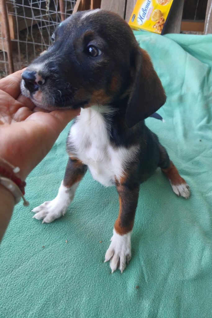 Mac ist ca. 07/2025 geboren und derzeit (27.10.) 30 cm hoch. Mac und seine 5 Geschwister wurden in Bulgarien vor einem öffentlichem Tierheim ausgesetzt – man wollte, das sie schnell gefunden werden. Die 6 Hundekinder wurden dort natürlich aufgenommen, durchgecheckt und so gut wie es möglich ist versorgt. Ein öffentliches Shelter ist allerdings kein guter Ort für so junge Hunde und sie sollten schnell in ein schönes Zuhause reisen können.