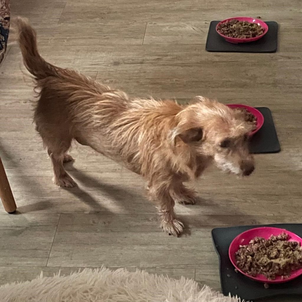 In ihrem ersten Zuhause wurde sie leider etwas vernachlässigt, eine Pilzerkrankung wurde übersehen und das Fell fiel ihr aus. In den letzten Woche hat sie medizinische Bäder und Medikamente bekommen – ihre Haut konnte sich endlich erholen und das Fell ist wieder nachgewachsen. Ihre Blutwerte sind alle ganz ausgezeichnet und es ist keine weitere Behandlung erforderlich. An der Stubenreinheit wird noch gearbeitet, wir vermuten, dass sie zuletzt kaum noch nach draußen kam.