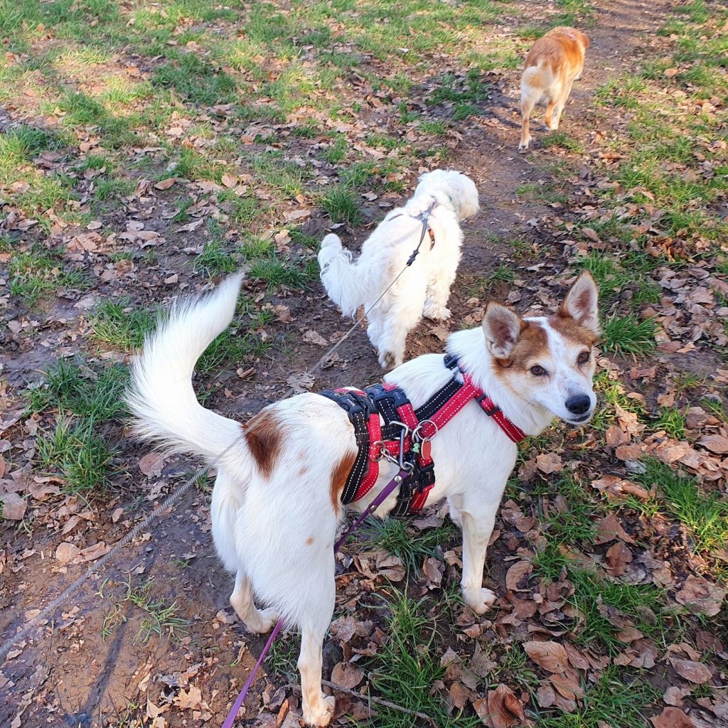 Melba ist draußen sehr aktiv und liebt die langen Spaziergänge in der ruhigen Natur. Sie zeigt einen leichten Jagdtrieb, der jedoch gut händelbar ist. Das Autofahren klappt auch problemlos. Drinnen ist sie sehr entspannt und kommt von alleine zur Ruhe. Sie kann mit den vorhandenen Hunden mehrere Stunden alleine bleiben, war von Anfang an stubenrein, kennt die gängigen Alltagsgeräusche (Staubsauger, Fernseher, etc), bleibt auch bei Besuch entspannt und genießt die vertrauten Streicheleinheiten von ihrem Pflegefrauchen.