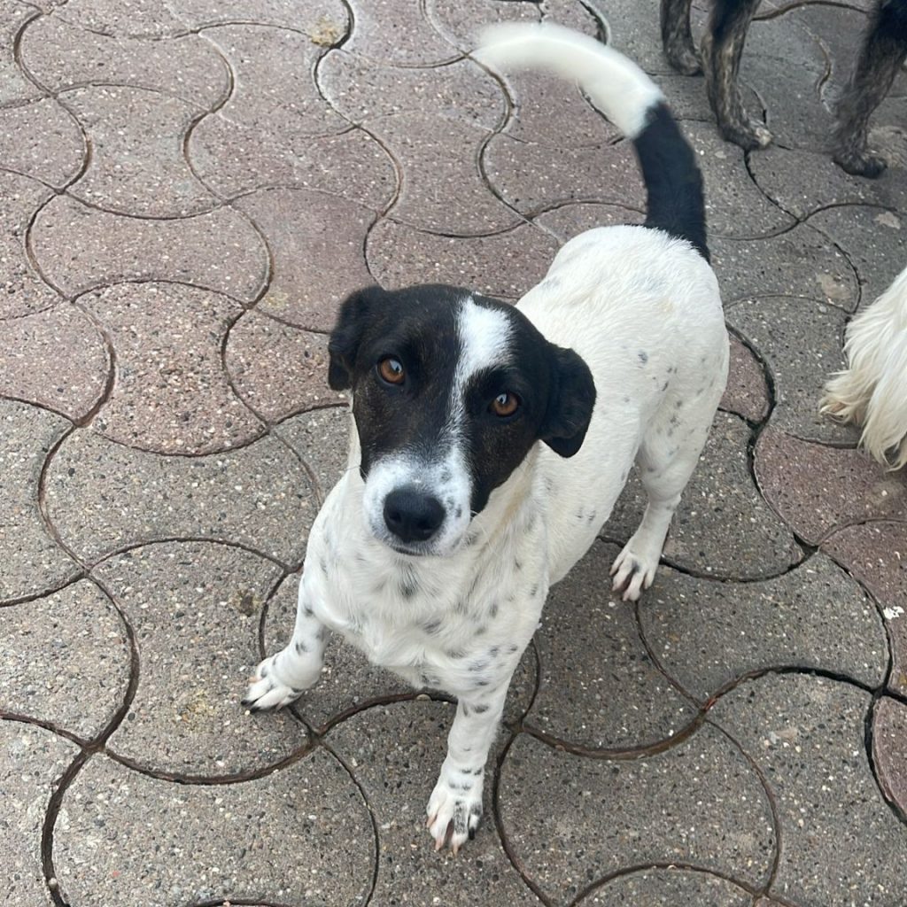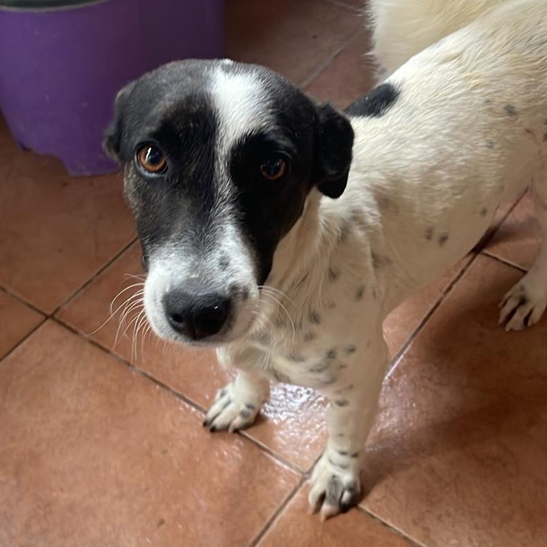 Molly ist ca. 05/2024 geboren, ca. 20-25 cm groß und wiegt ungefähr 6 kg. Auch Molly irrte alleine auf einem Feld umher bis Tierschützer sie an sich genommen haben – sie lebt jetzt bei einer Tierschützerin in einem großen Rudel heimatloser Hunde und hofft, schon bald eine Familie zu finden.