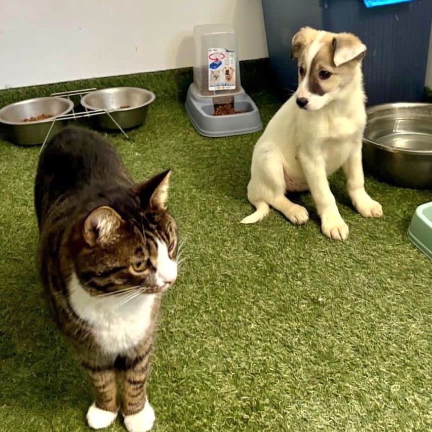 Nikki ist ein aktiver, aufgeweckter Welpe, der die Geborgenheit bei den Tierschützern genießt. Sie liebt die Nähe zum Menschen und genießt die Streicheleinheiten sehr. Altersentsprechend ist sie verspielt, aktiv und dabei stets sanft im Umgang mit ihren Artgenossen. Nikki lebt mit Katzen zusammen. Im Umgang mit ihnen zeigt sie sich neugierig und vorsichtig.