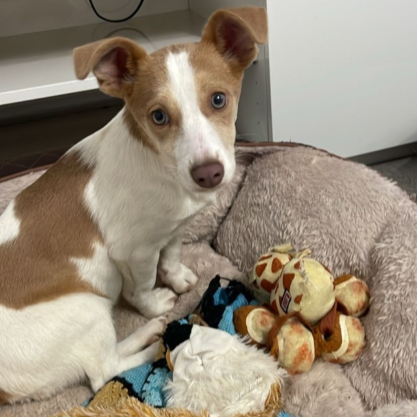 Paloma ist ca. 08/2025 geboren, aktuell (25.12.) ca. 20 cm groß und wiegt ca. 5 kg. Paloma und Picasso wurden in einem Zuhause geboren, aber man wollte oder konnte die Welpen nicht behalten und hat sie bei einer Tierschützerin abgegeben. Dort leben sie jetzt mit vielen anderen Hunden zusammen. Picasso hat bereits feste Interessenten und darf mit dem 1. Transport im Januar auf seine Reise ins Glück gehen – es wäre schön, wenn Paloma nicht zurückbleiben muss.
