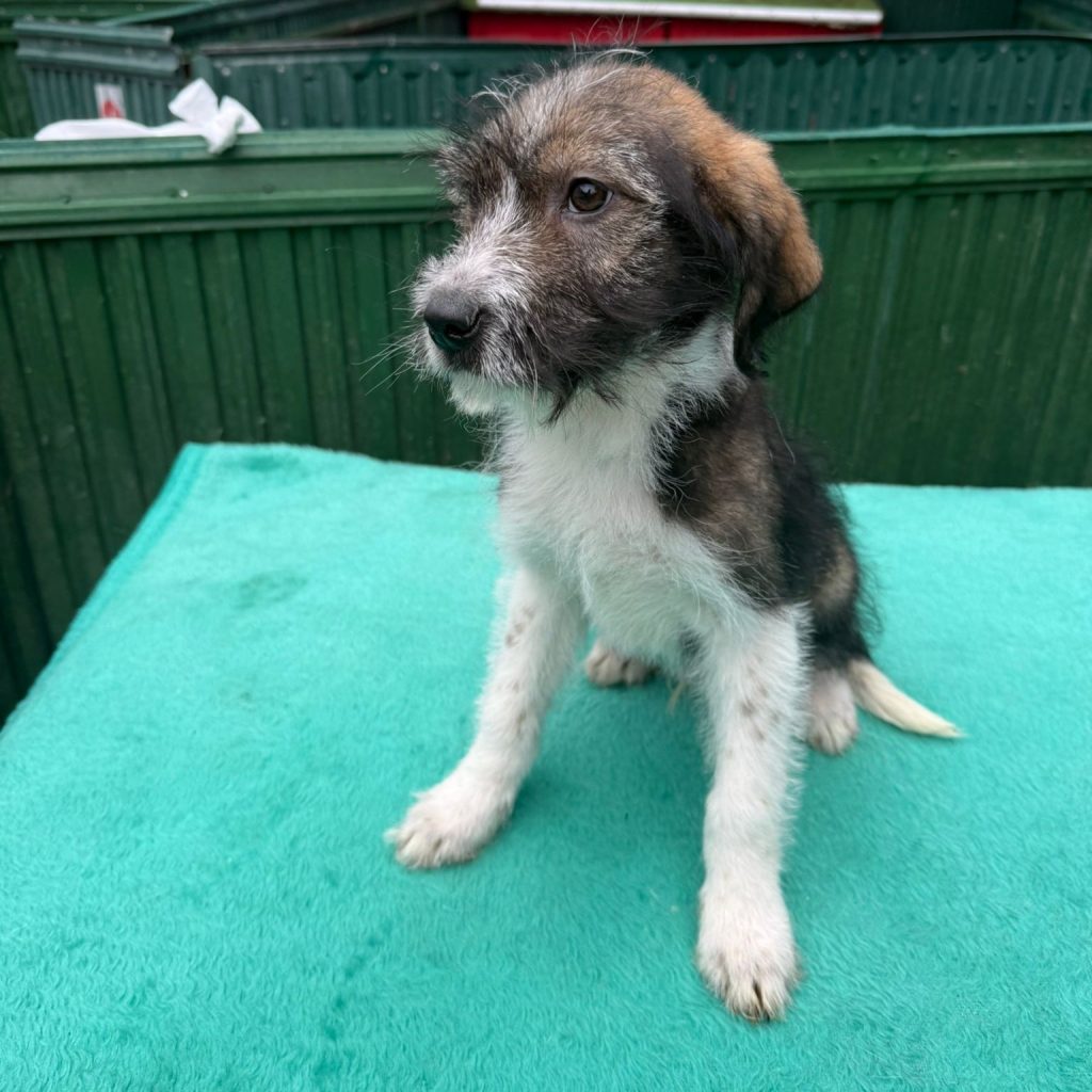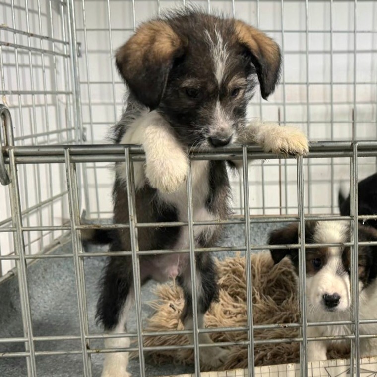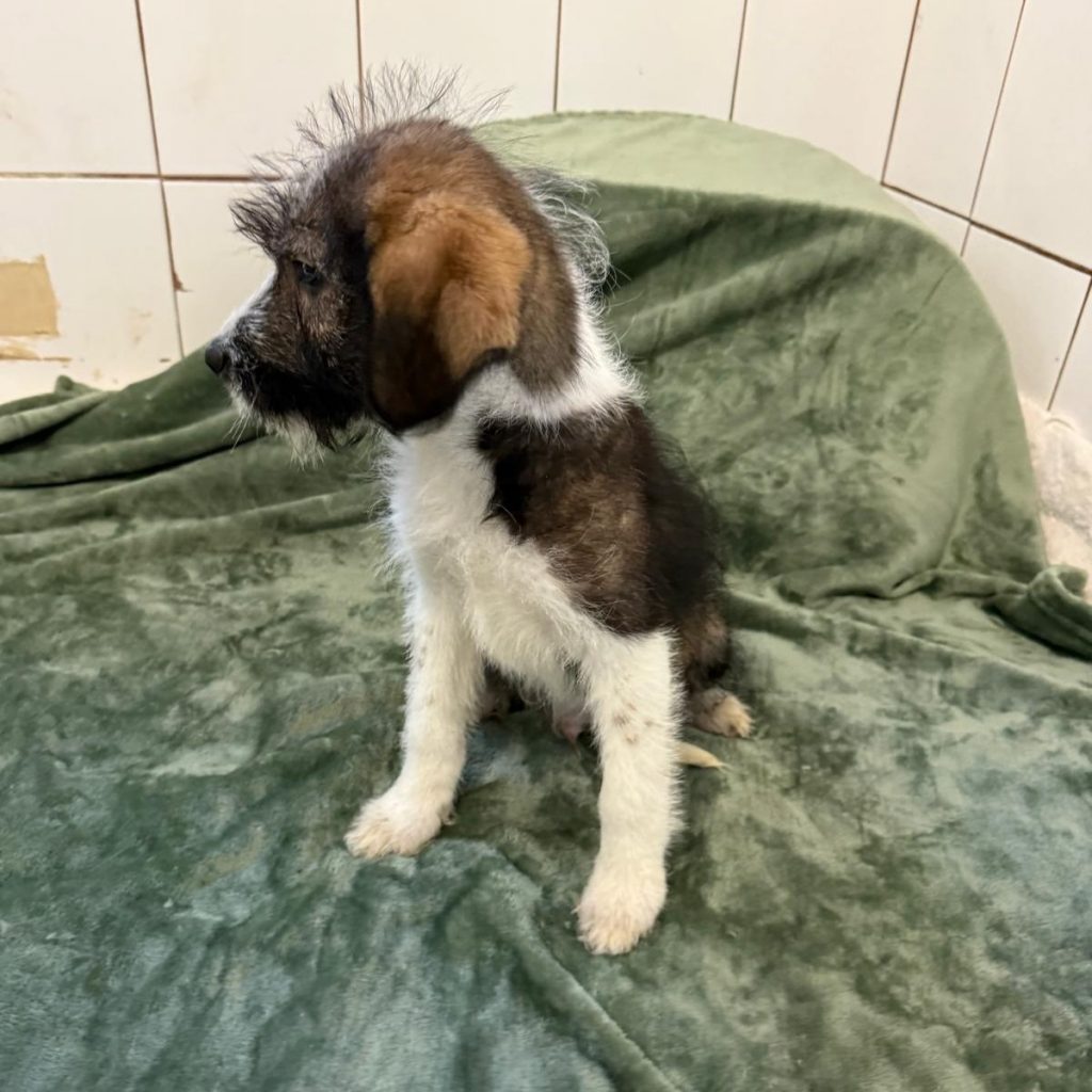 Perie ist ca. 10/2025 geboren und aktuell (22.01.) 25 cm hoch und 4 Kg schwer. Er wurde mit seinen beiden Brüdern Peton und Piet aus einem öffentlichem Shelter gerettet. Da die Zustände dort sehr schlecht sind und auch kaum Futter zur Verfügung steht, war das ein großes Glück für die Hundekinder. Die Kleinen leben seither in einem privaten Mini-Shelter nahe Bukarest.