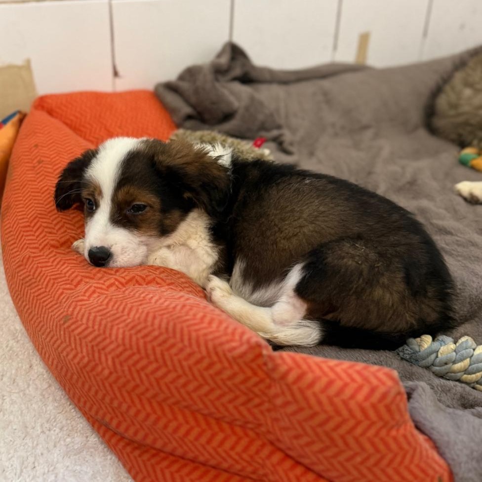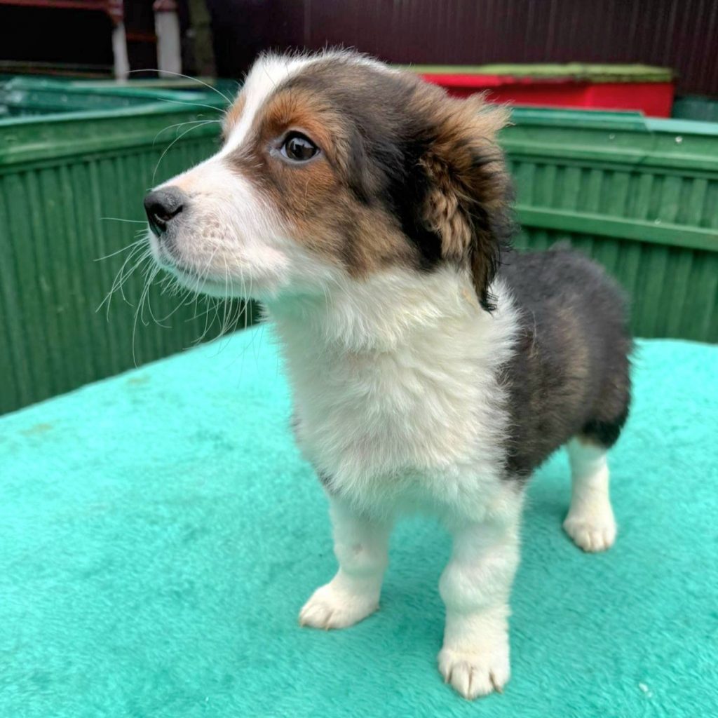 Peton ist ca. 10/2025 geboren und aktuell (22.01.) 23 cm hoch und 4 Kg schwer. Er wurde mit seinen beiden Brüdern Piet und Perie aus einem öffentlichem Shelter gerettet. Da die Zustände dort sehr schlecht sind und auch kaum Futter zur Verfügung steht, war das ein großes Glück für die Hundekinder. Die Kleinen leben seither in einem privaten Mini-Shelter nahe Bukarest.