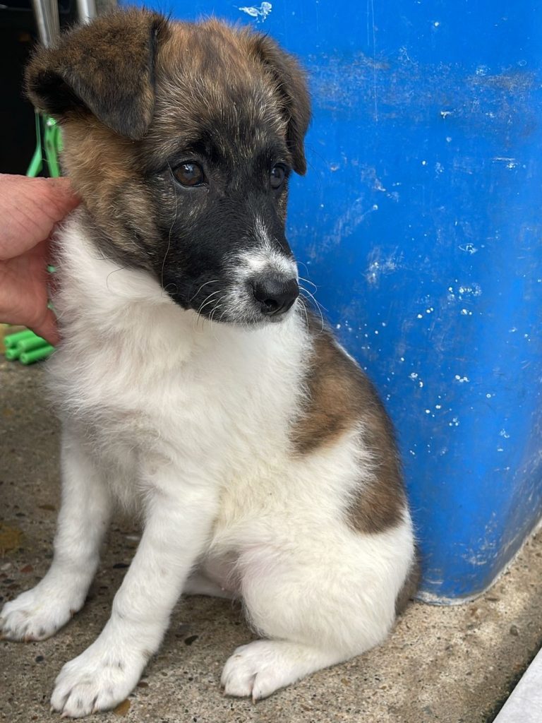 Roxy ist ein liebes und neugieriges kleines Welpenmädchen und erkundigt mutig das Mini-Shelter. Menschen gegenüber zeigt sie sich offen und freundlich und sie versteht sich ebenfalls gut mit anderen Hunden. Bei Ihrer zukünftigen Familie möchte sie noch in Ruhe das Hunde-ABC lernen.