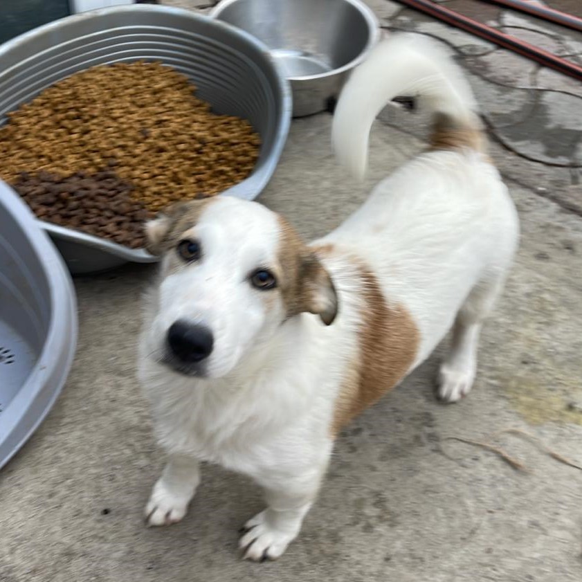 Der kleine Schlumpf ist ca. 04/2025 geboren und aktuell (17.9.) ca. 20-25 cm groß. Schlumpf irrte alleine in einem Dorf umher und lief im Prinzip einer Tierschützerin direkt in die Arme. Er lebt jetzt bei ihr, gemeinsam mit vielen anderen heimatlosen Hunden, denen sie ein Zuhause auf Zeit gibt.