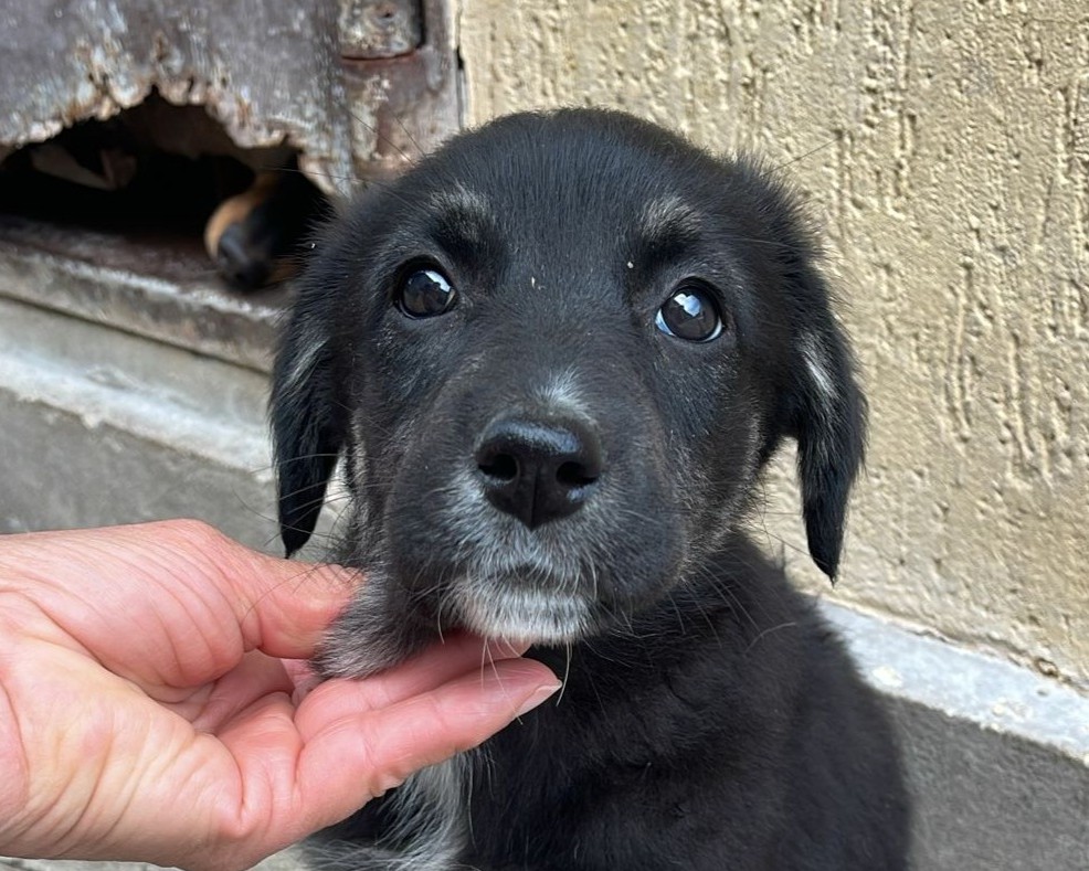 Toive ist ca. 01/2026 geboren und aktuell (3.4.) etwa 18 cm groß und wiegt rund 3 Kg. Sie stammt aus Rumänien und wurde dort gemeinsam mit ihren Geschwistern in der Kälte auf einem Feld gefunden. Eine liebe Tierschützerin hat die Welpen an sich genommen und liebevoll aufgepäppelt.