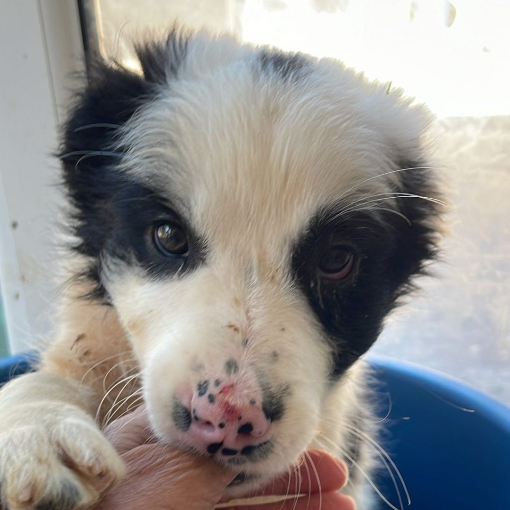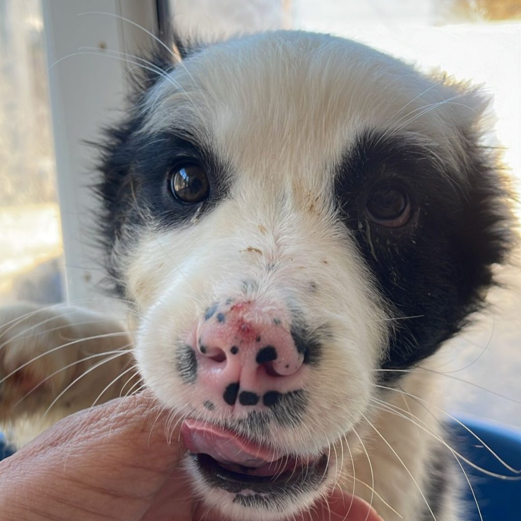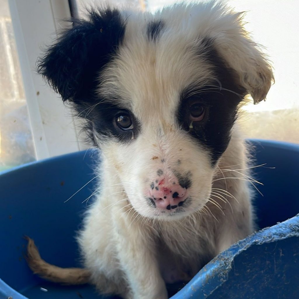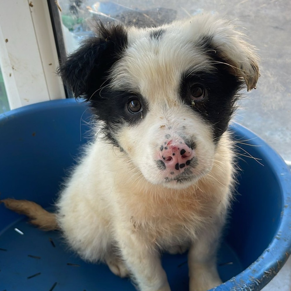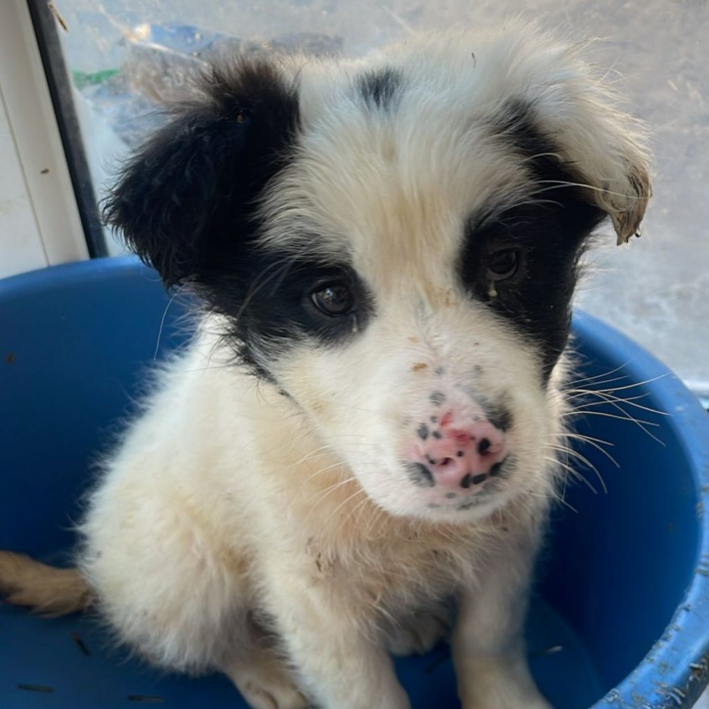 Uggles ist ca. 11/2025 geboren und ist aktuell (26.2.) ca. 20 cm groß und wiegt ca. 2,5 kg. Uggles ist mit seinen 4 Schwestern unter einem Wagen in einer abgelegenen Gegend gefunden worden. Es scheint so, dass die Welpen ausgesetzt worden sind – ihre Mutter war nicht bei ihnen und so drängten sie sich eng aneinander, um sich wenigstens ein wenig gegenseitig wärmen zu können. Sie hatten großes Glück, denn eine liebe Tierschützerin hat sie gefunden und mit zu sich nach Hause genommen hat. Dort sind sie endlich in Sicherheit, müssen nicht mehr frieren und hungern – sie leben dort mit vielen anderen Fundhunden zusammen.