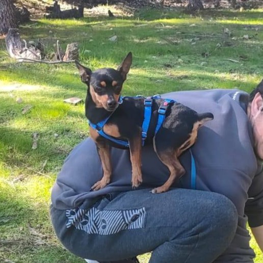 Urmel ist ein ganz entzückender kleiner Mini-Pinscher-Rüde. Er mag die Nähe zum Menschen, kennt Kinder, genießt es gestreichelt zu werden und freut sich über jede Art der Aufmerksamkeit . Mit anderen Hunden ist er sehr gut verträglich und kommt gut mit Katzen aus. Er wurde mit einer verkürzten Rute geboren.