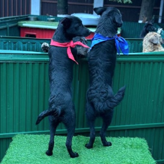 Die Geschwister lieben den Kontakt zu den Menschen und genießen jede Streicheleinheit. Sie verhalten sich altersentsprechend: sind lieb, verspielt und neugierig – auch mit den anderen Hunden und mit Katzen verstehen sie sich sehr gut.