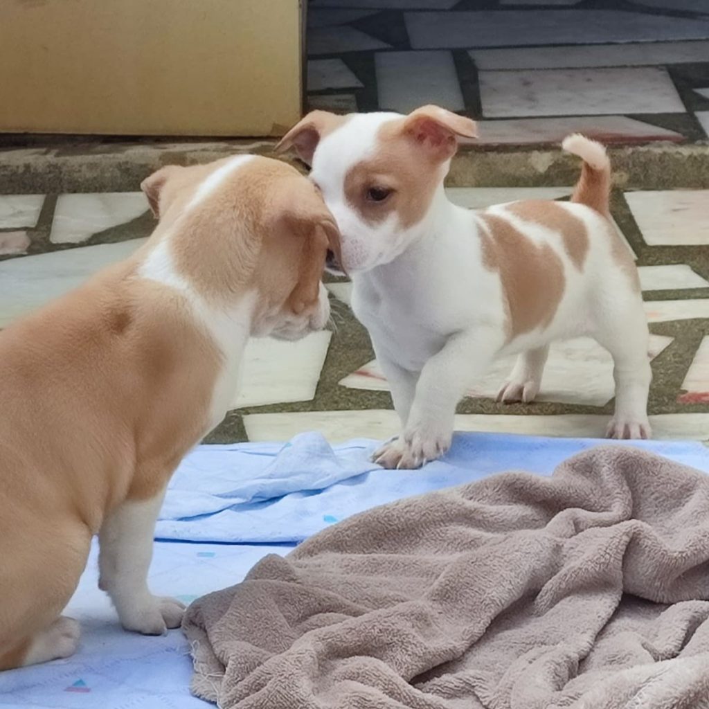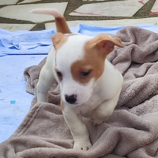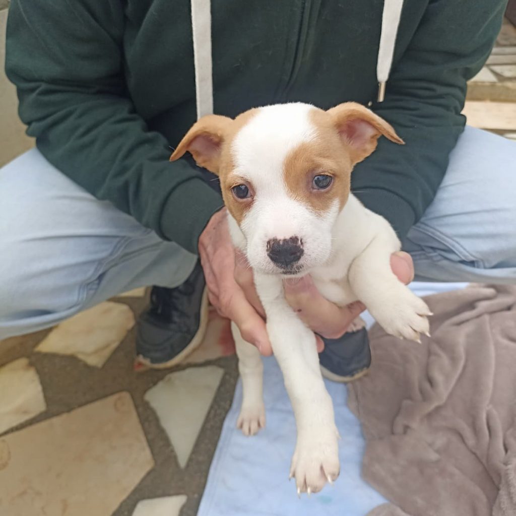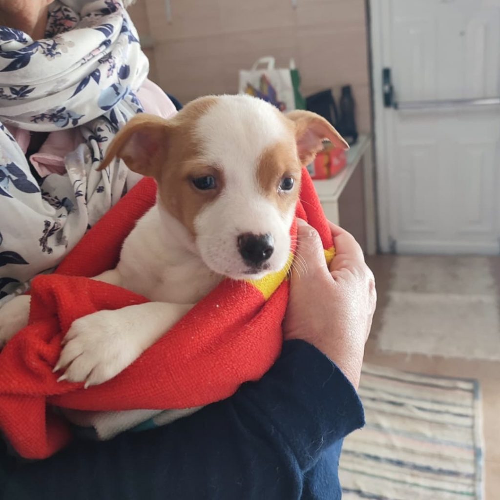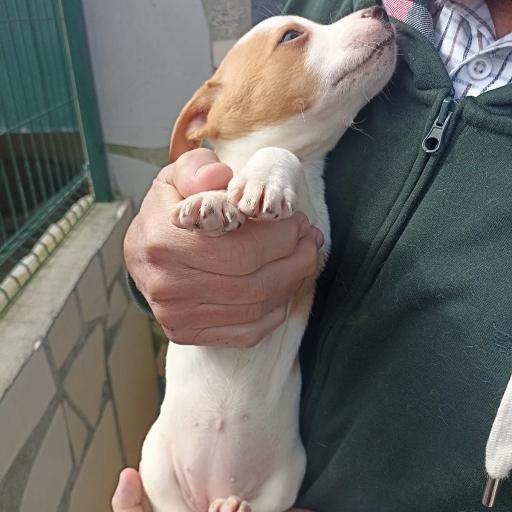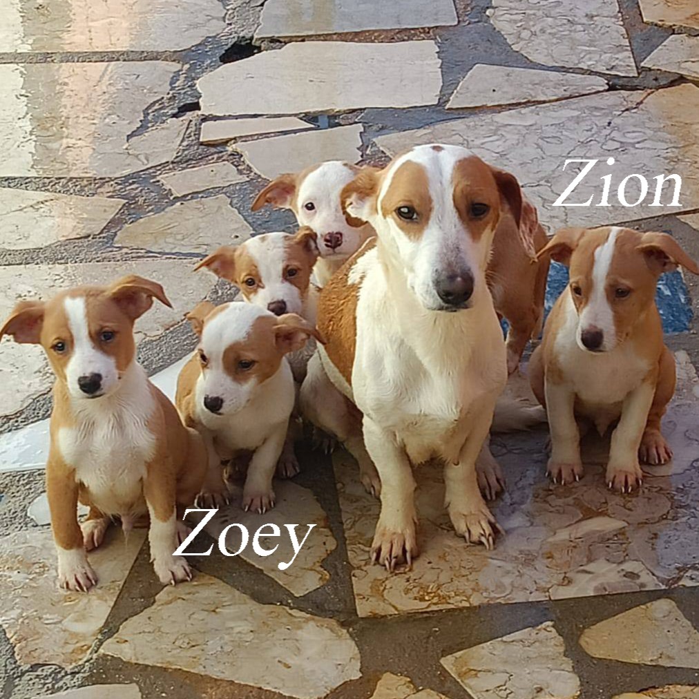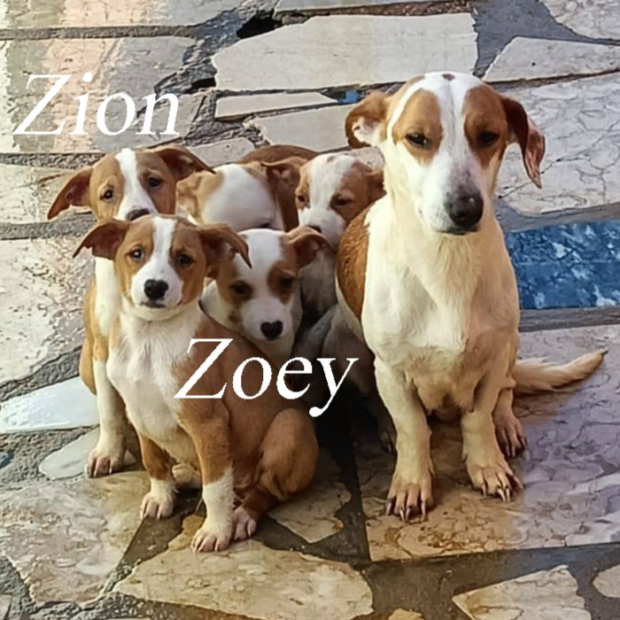Zoey ist ca. 01/2026 geboren, aktuell (9.4.) 20 cm groß und wiegt 2,5 kg – die Fotos sind vom 17.3., da war Zoey noch etwas kleiner. Sie wurde mit ihrer Mutter und 4 Geschwistern beim Tierschutz abgegeben. Den Vater der Welpen hat die Familie behalten. Seither lebt die Hundefamilie in unserem Partnertierheim in Portugal.